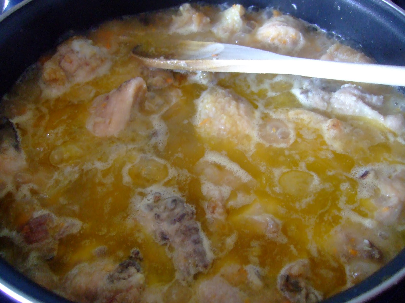 Se cogen los trozos de pollo se salan y se fríen en una sartén con aceite.
