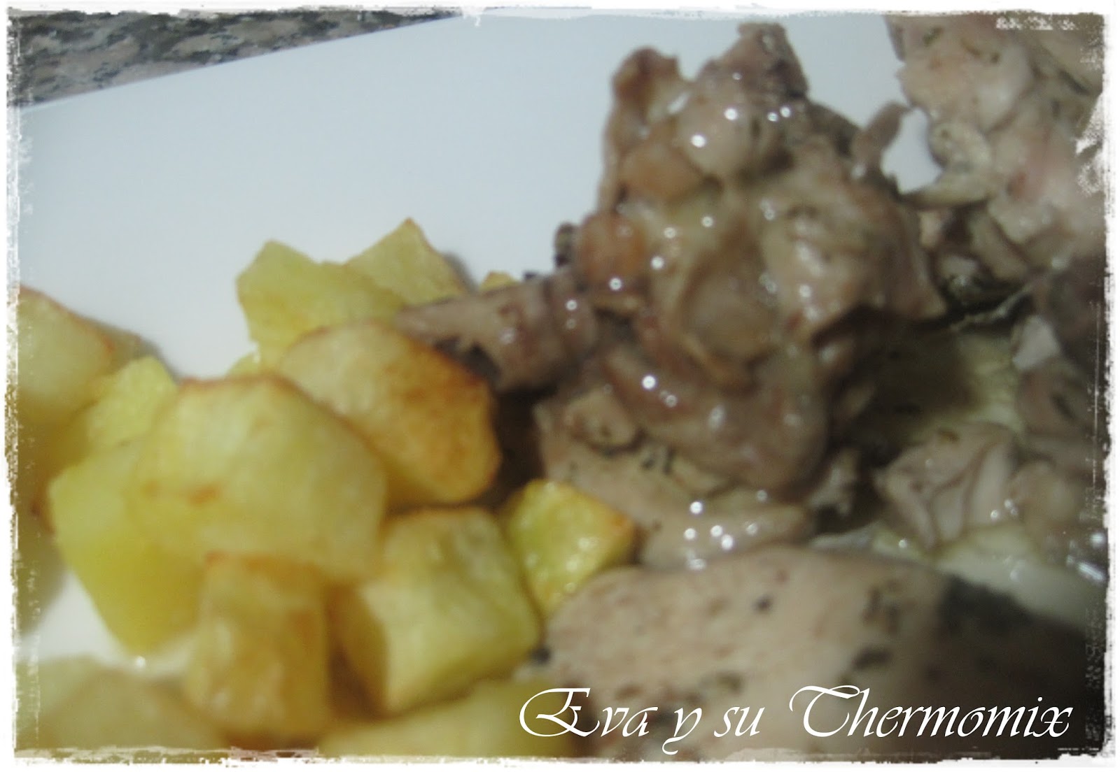 El resultado es un pollo sabroso, al que el toque de las hierbas aromáticas le da un puntito diferente. Yo lo acompañé de patatas fritas a daditos.