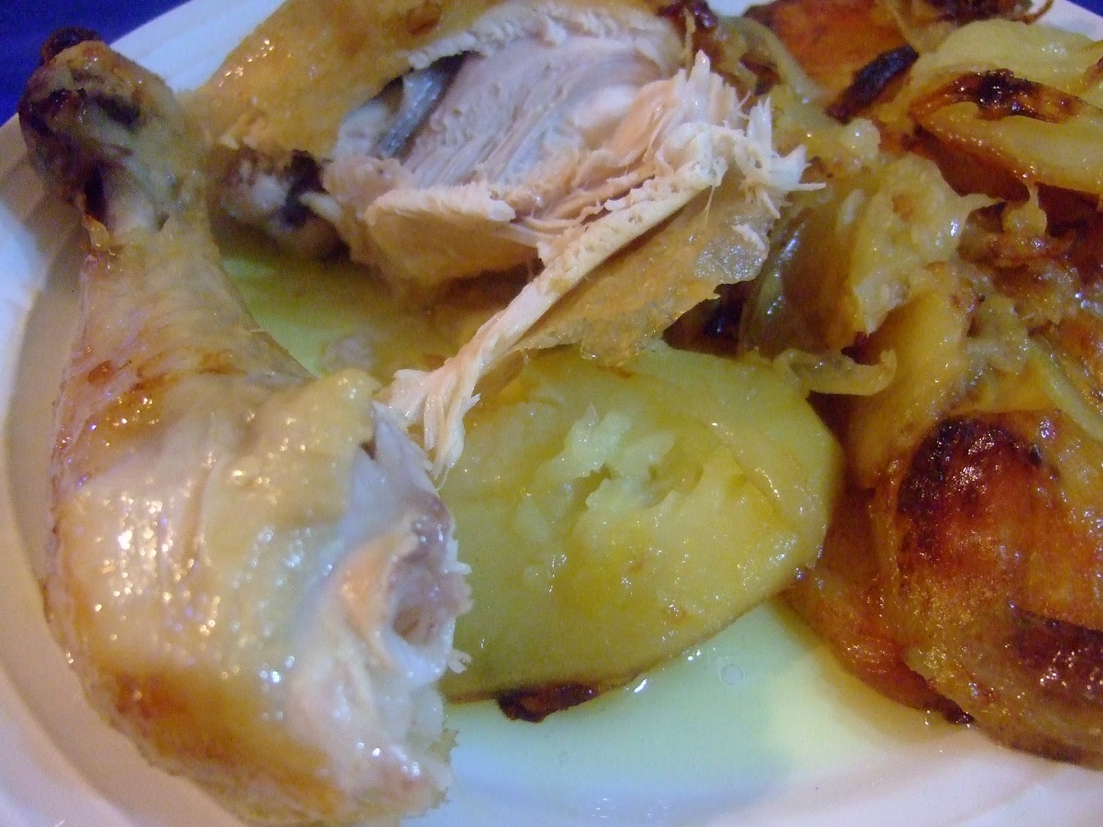 Se sala el pollo y se pone encima de las patatas.
