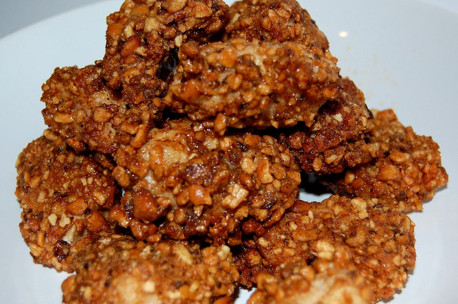 Pasamos los trozos de pollo por la mezcla de especias elegida (o por ninguna, si lo preferís), luego por el huevo batido y finalmente por los kikos.