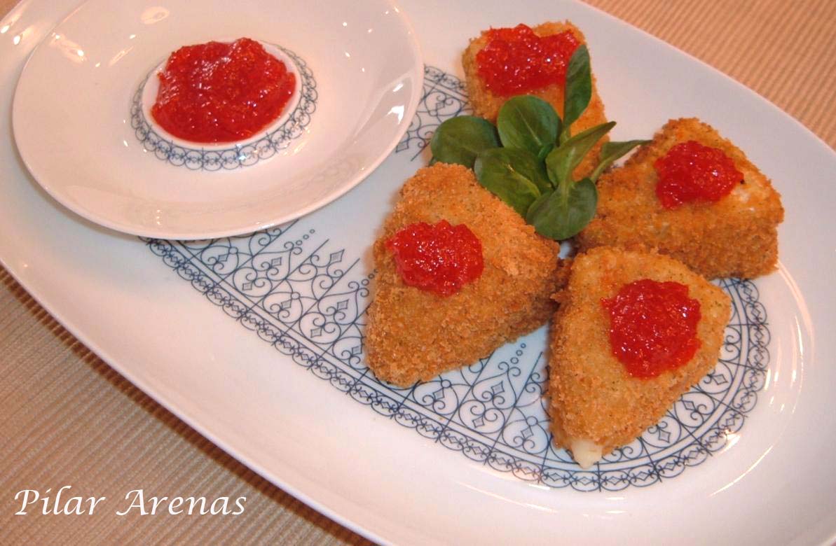 Este queso rebozado queda estupendo acompañado de pimientos confitados. La receta de los pimientos la encontraras en mi blog.