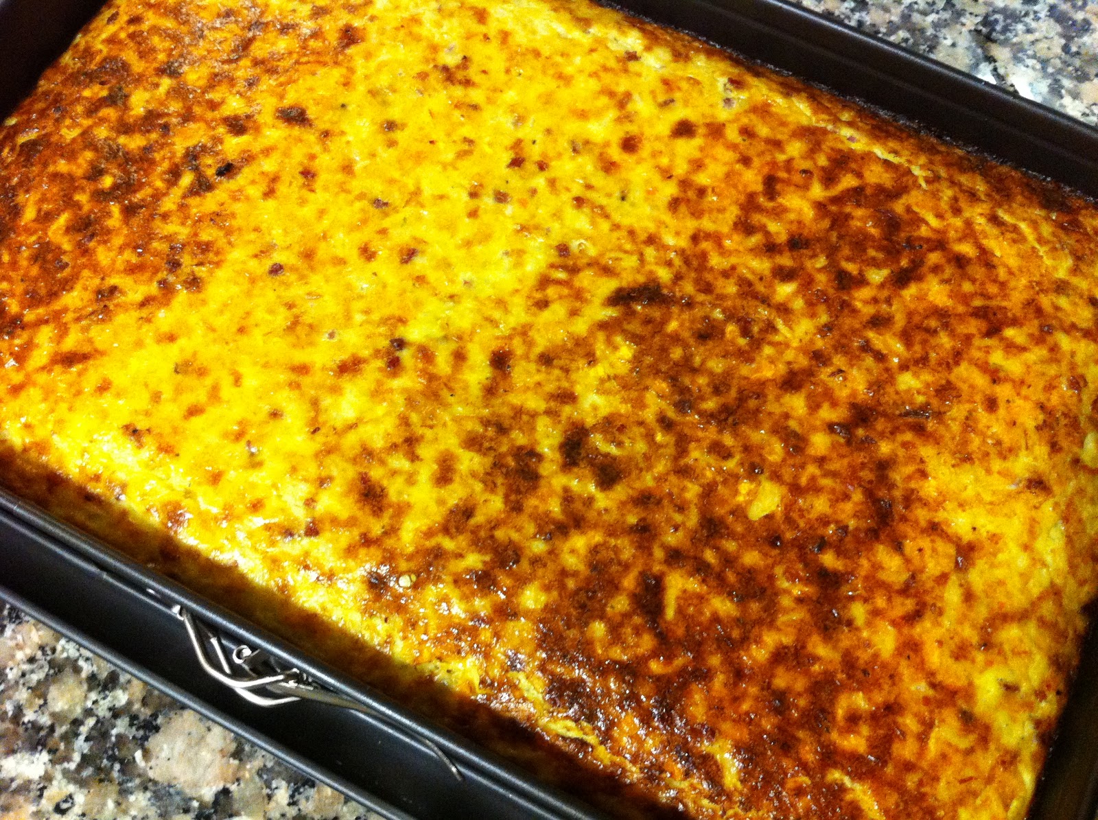 Agregamos los huevos, la nata, el cebollino, la sal, la pimienta, la nuez moscada y el queso con perejil reservado.
