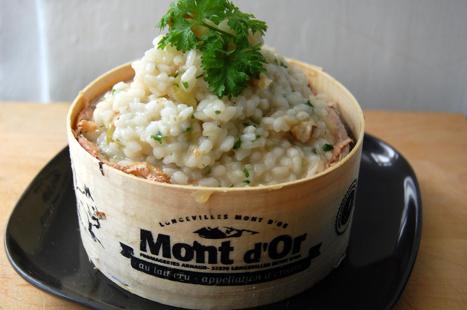 Repetimos hoy con otro risotto. Esta vez de apio y nueces y servido en el interior de un queso Mont d’Or (queso cremoso de vaca). Es muy parecido a otra receta que aparece en este blog (Risotto de Torta del Casar).
