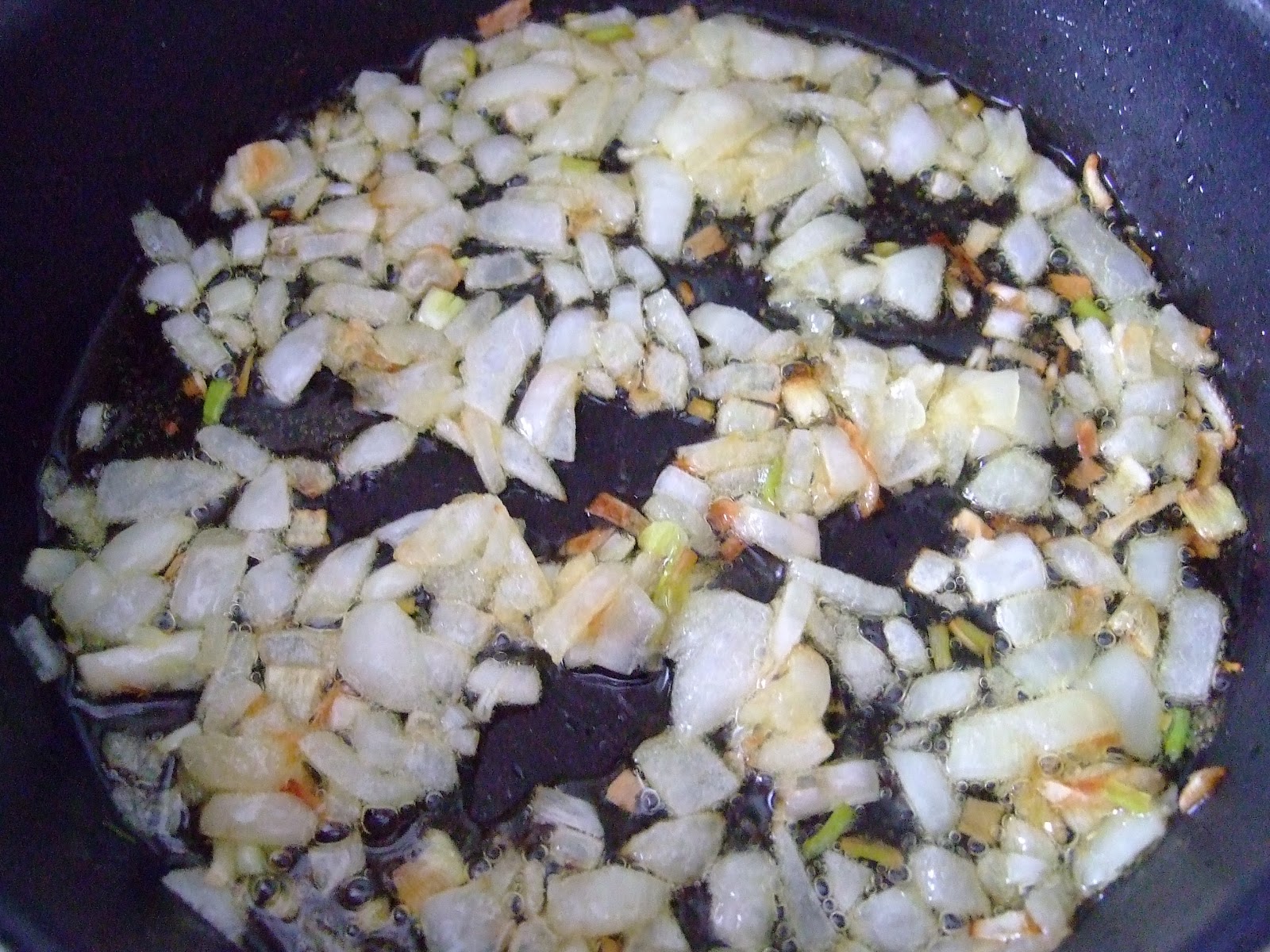 Se pica la cebolla en juliana, mientras en una sartén se pone aceite.