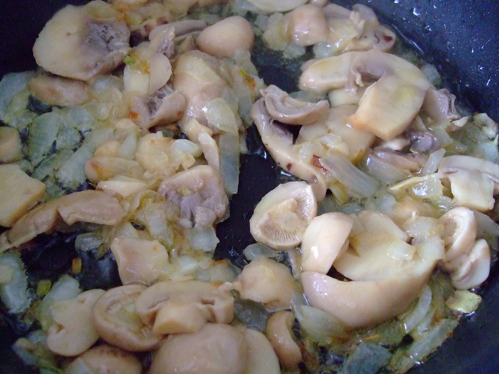 Cuando la cebolla este pochada, se le incorporan los champiñones laminados.