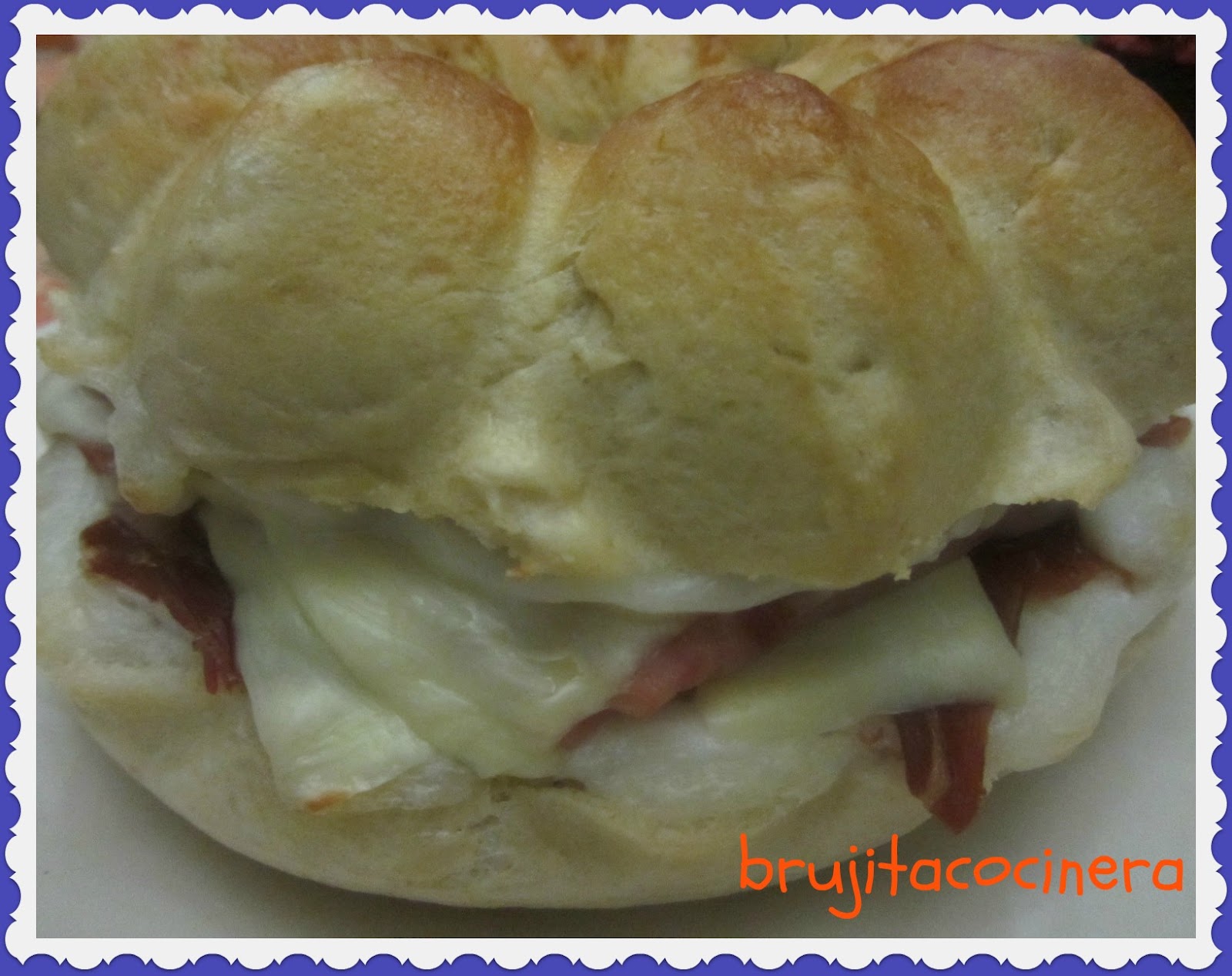 8.luego abrir la rosca y rellenar con LACTONESA y jamón Serrano y lonchas de queso