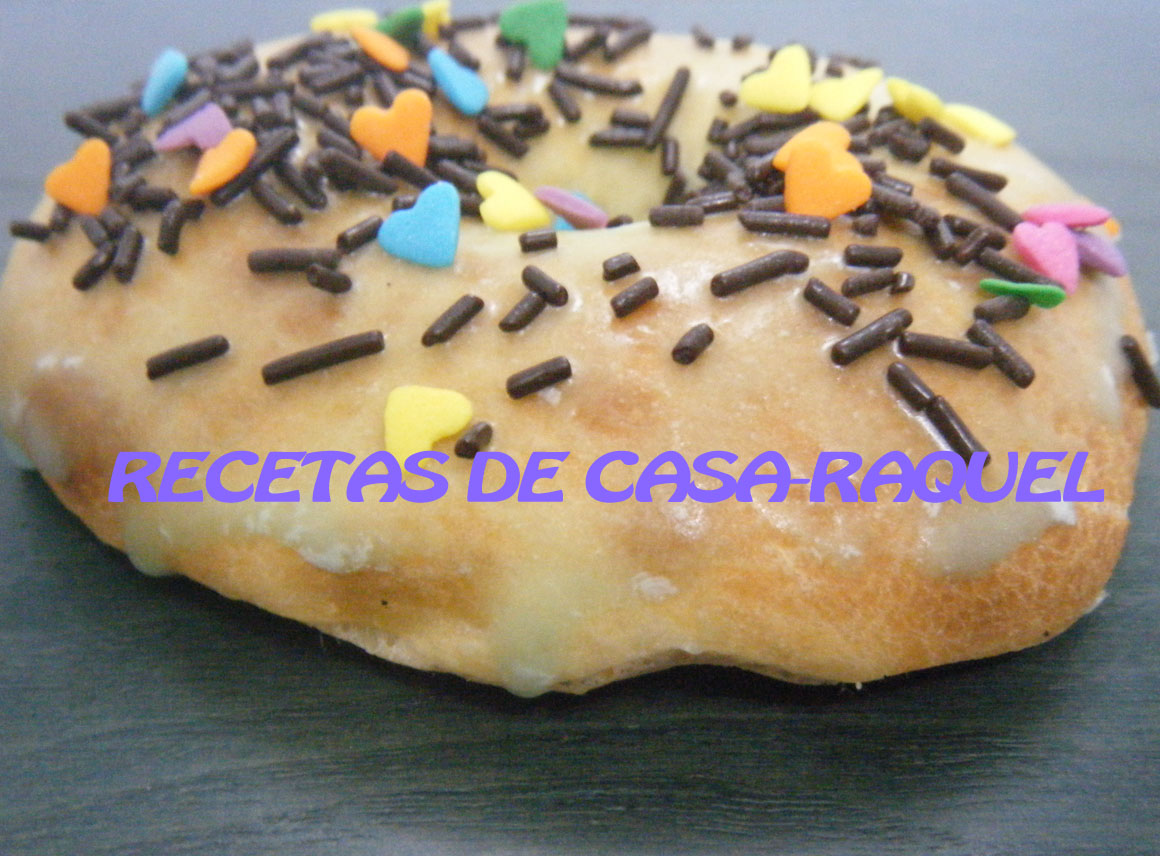Enfriar encima de una rejilla.Tritura el azúcar 1 minuto a velocidad 6 añade agua y programa 4 minutos a 100º velocidad 2 yo le puse color azul vierte el glaseado en las rosquillas y decora al gusto.