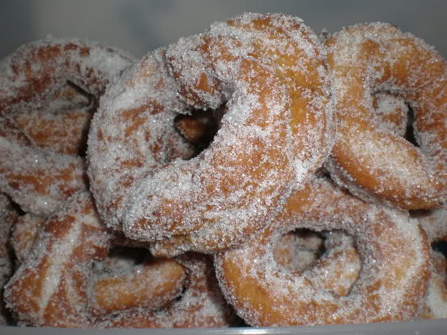 6.-Freírlos en aceite caliente hasta que estén dorados, escúrralos sobre papel absorbente y sírvalos rebozados en azúcar.