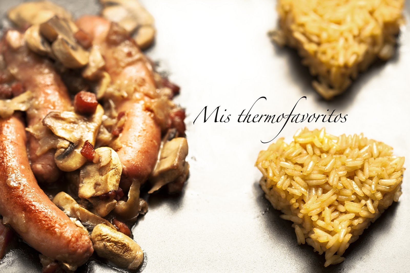 Hoy os traigo una recetita de salchichas que está buenísima, parece increíble que en la thermomix también se puedan hacer este tipo de recetas, ¡pues si! además quedan espectaculares. La receta lleva además taquitos de jamón y champiñones, lo que lo hace un plato aún más completo, acompañado de un buen arroz de guarnición queda un plato espectacular. ¡Espero que os guste!