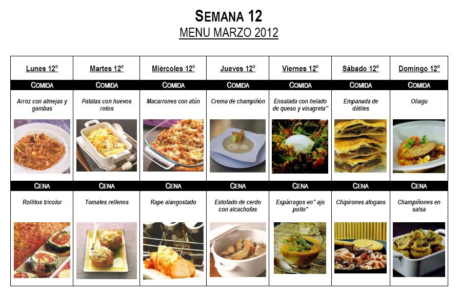 SEMANA 12. Menú mensual Marzo 2012