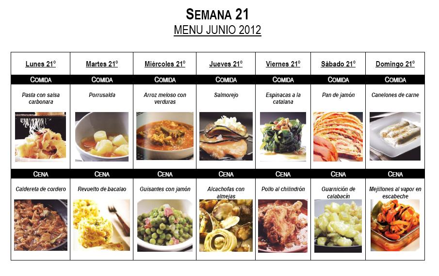 Como no es la primera vez que me escribís, preguntando cómo descargar las recetas de cada plato, que hay en la foto del menú de cada semana. Os escribo a continuación el procedimiento: es muy fácil, sólo tenéis que «pinchar» con el ratón, en el enlace que pongo justo debajo de cada foto, donde pone: Semana XX. Menú mensual XXX 2012.