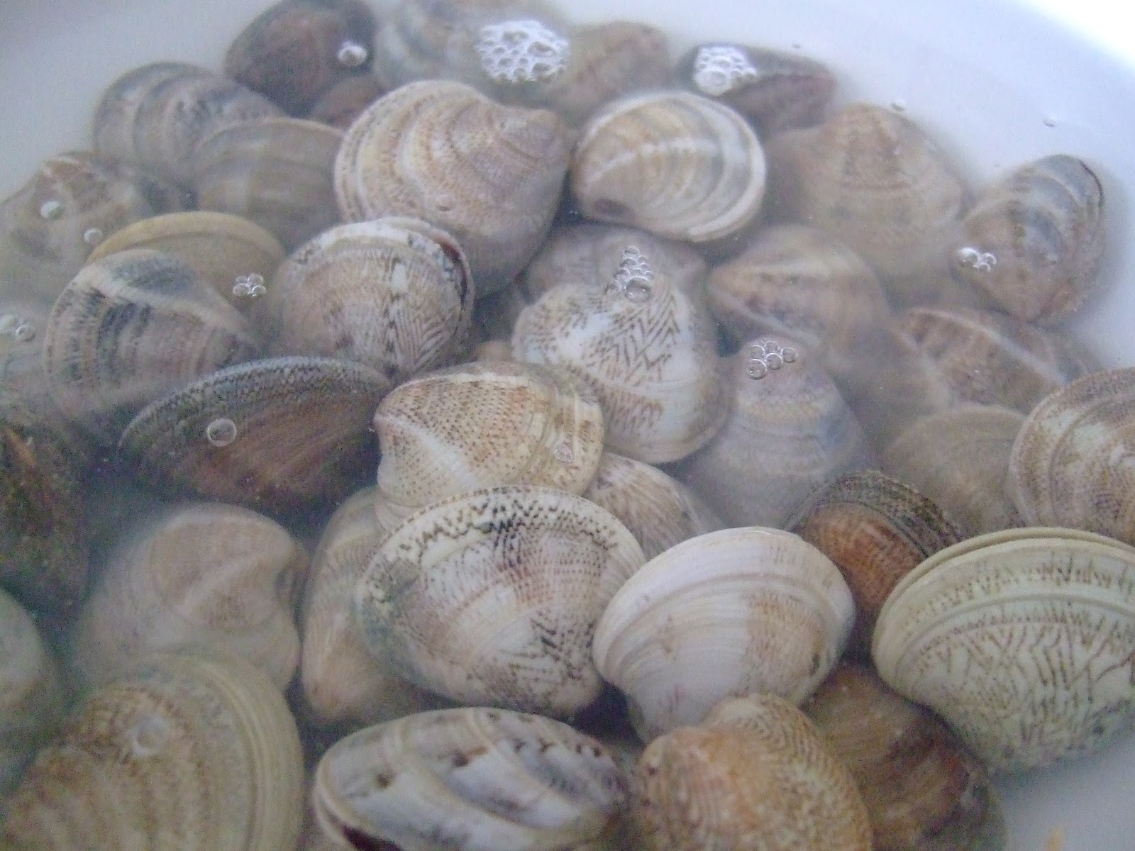 Se ponen las chirlas en agua. Y se lavan una par de veces.