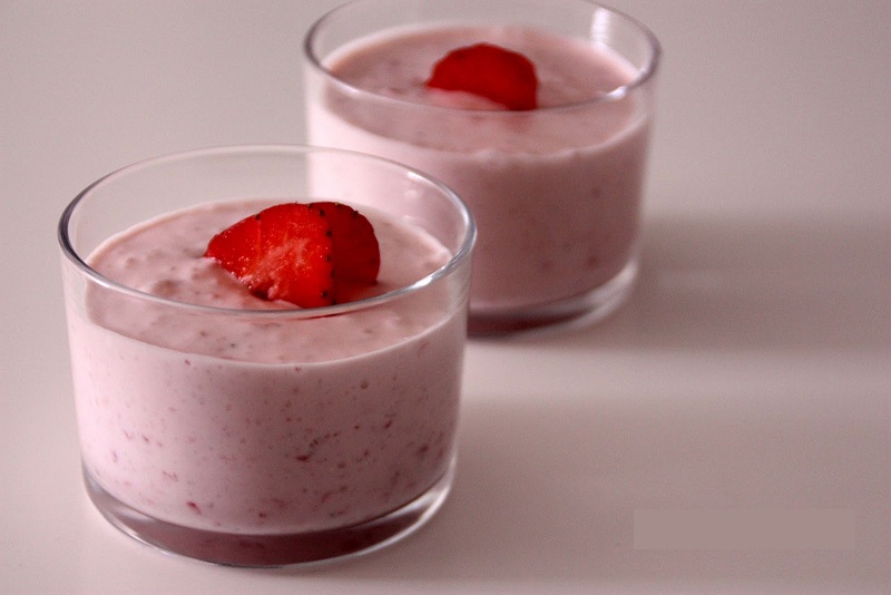 Ponga en el vaso todos los ingredientes y programe 1 minuto en velocidad progresiva 5-10. Sirva en las copas y decore con fresas o cereales de chocolate.