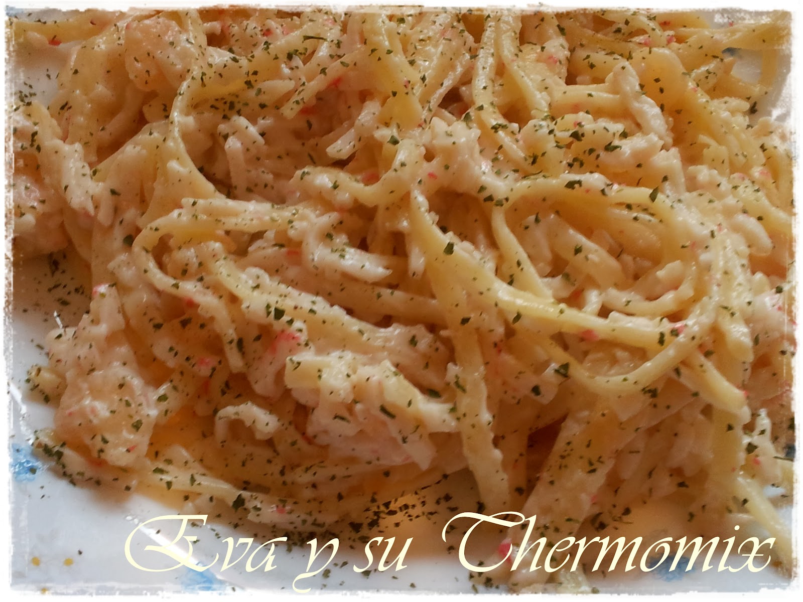 –Programar 10 minutos a 100º, giro a la izquierda y velocidad cuchara, e ir entroduciendo los tallarines por el bocal (podéis partirlos por la mitad para que os sea más fácil), apretando un poco según se vayan ablandando, colocar el cestillo en lugar del cubilete, cuando la pasta ya esté dentro del vaso. Dejar reposar 5 minutos y servir inmediatamente espolvoreados con perejil!