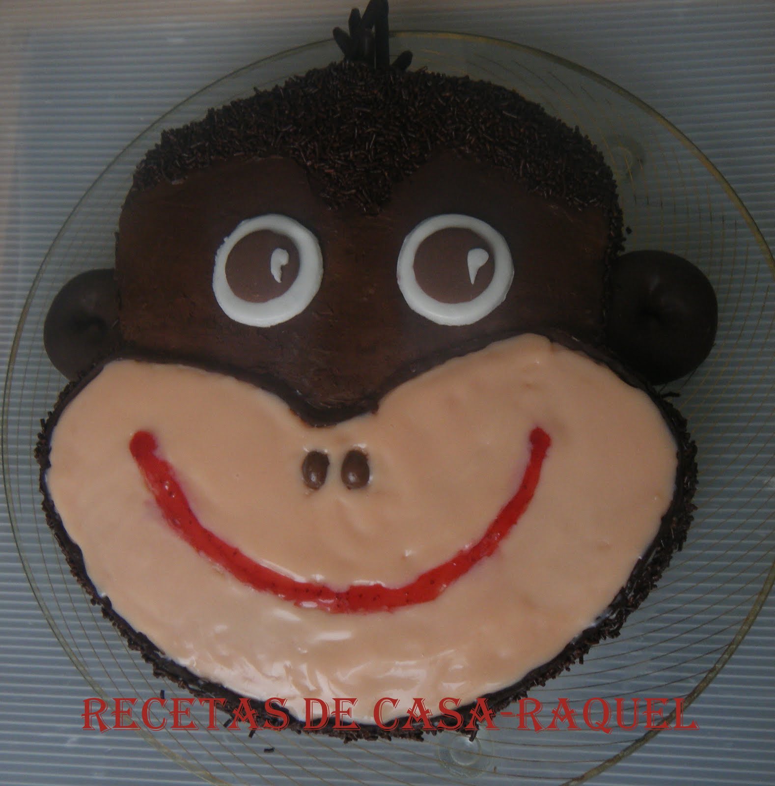 Esta tarta de carita de mono, con nata por dentro y chocolate por fuera, además de estar muy rica es muy graciosa para un cumple de niños o niñas.