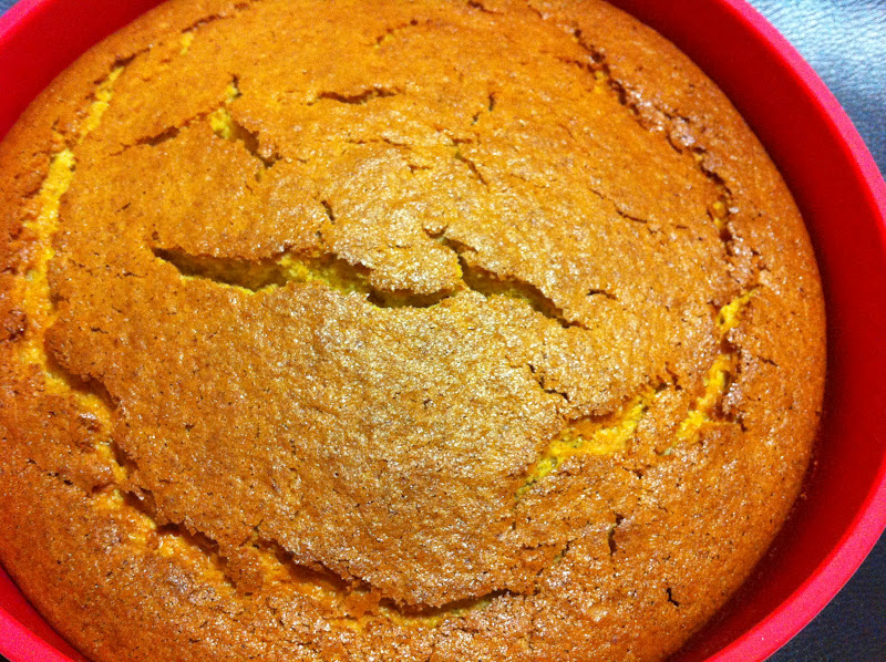 Para esta tarta he usado el bizcocho de la Carrot Cake especiado de Martha Stewart, pero podemos utilizar el bizcocho que prefiramos y el glaseado que más nos guste: con nata montada, mantequilla, de queso… yo usé simple nata montada y coloreada. Lo único que tenemos que tener en cuenta es que el bizcocho sea redondo y el glaseado compacto y moldeable.