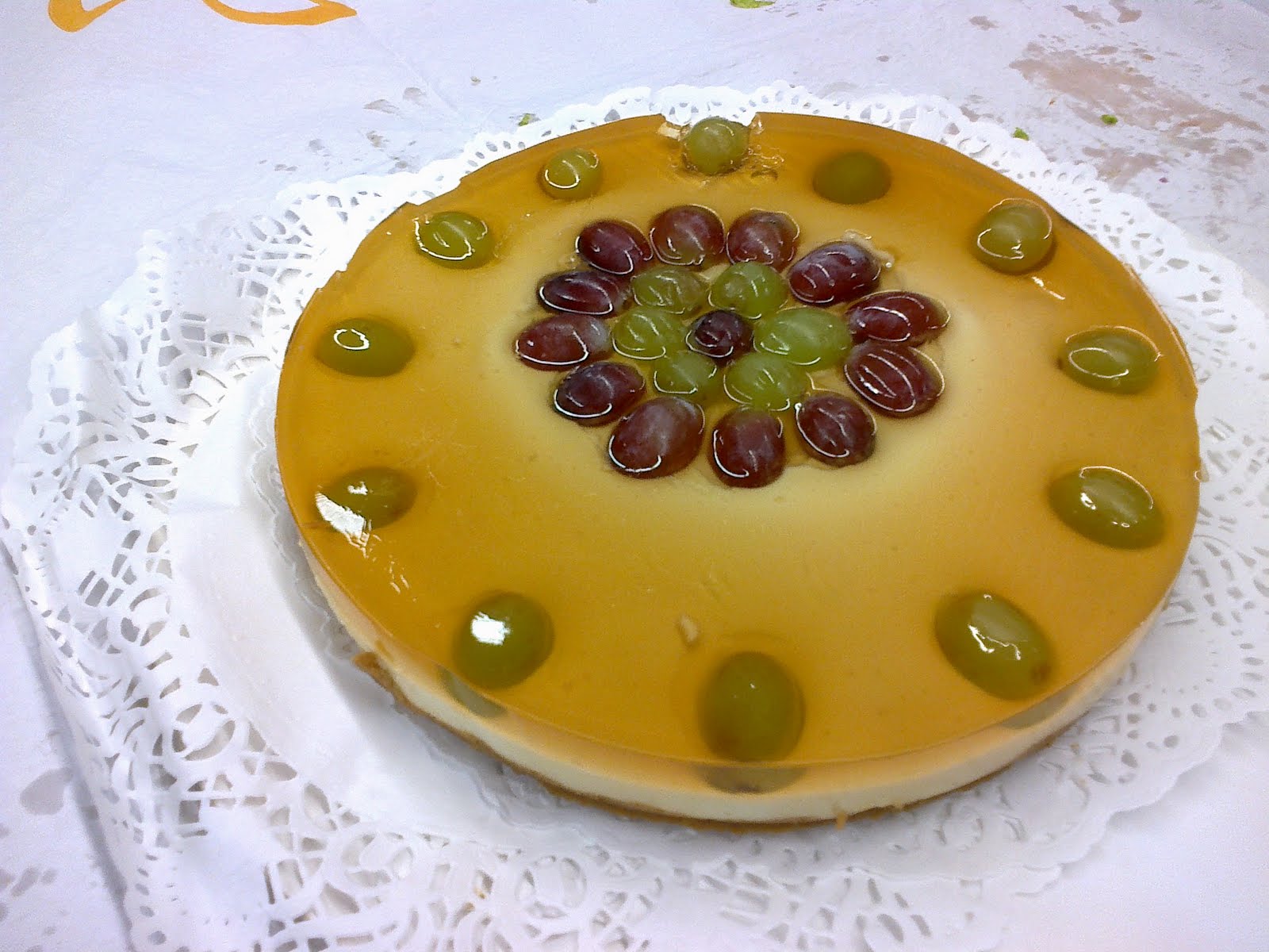 • Crema de queso con uvas: ponga en el vaso todos los ingredientes de la crema excepto las uvas y programe 7 minutos / 90º / velocidad 5. Vuelque en el molde reservado sobre la base de galletas y coloque las uvas de forma decorativa. Vierta con delicadeza la gelatina de Moscatel reservada, cubriendo la superficie de la tarta. Reserve en el frigorífico hasta que esté cuajada (un mínimo de 1 hora).