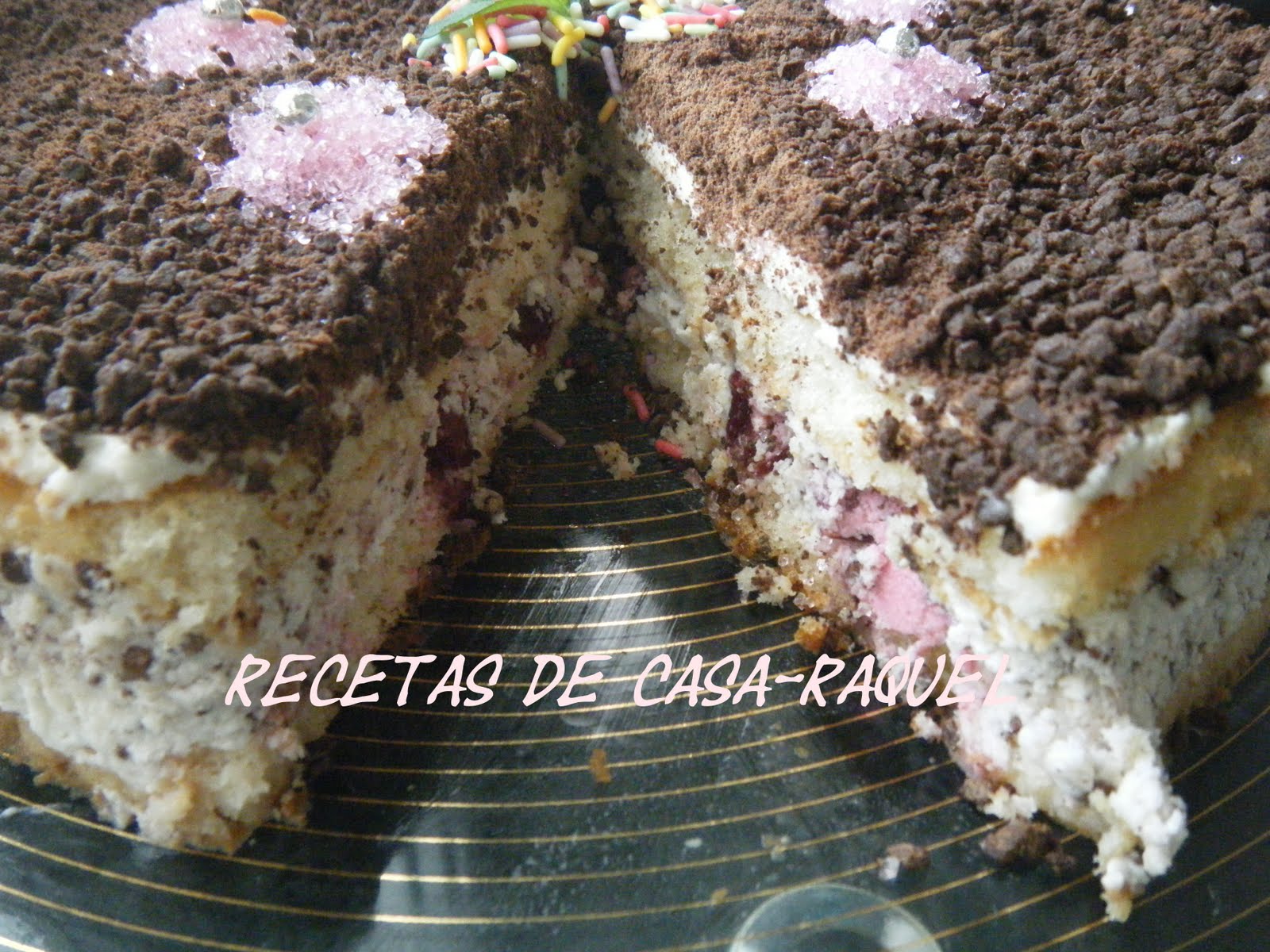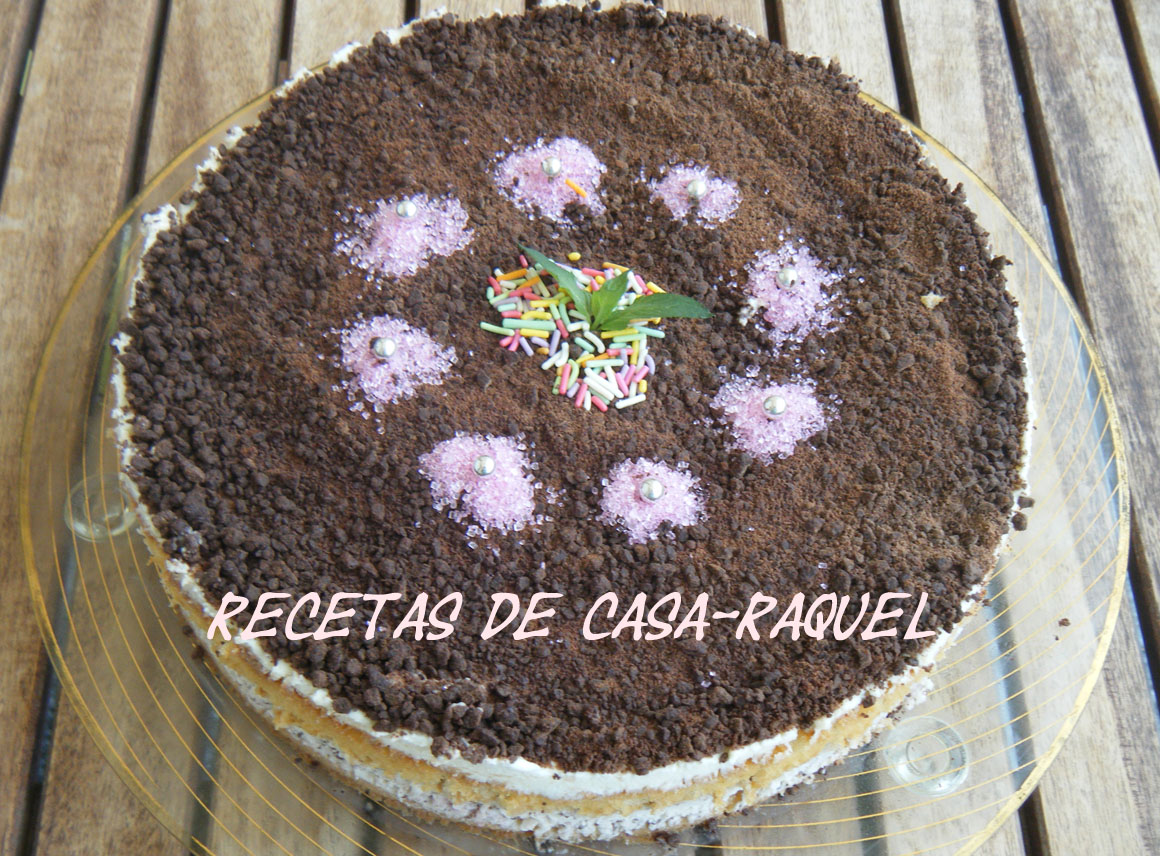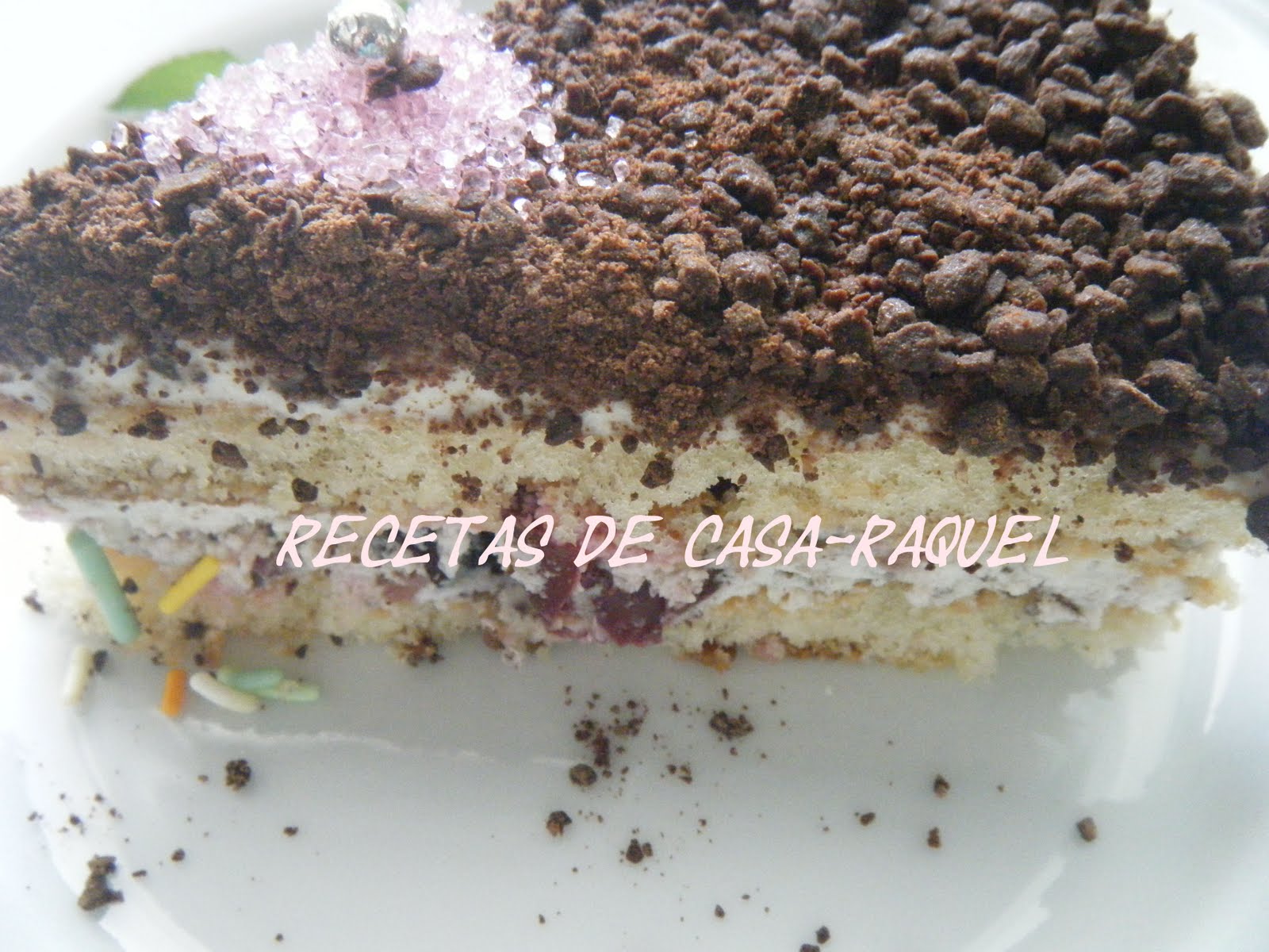 Terminando con bizcocho, encima de este ponemos nata montada y chocolate rallado.