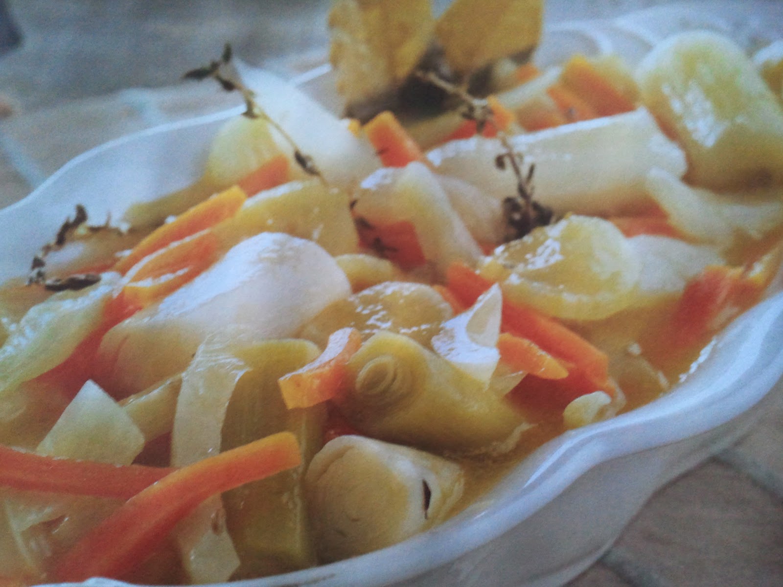- Disponga en una fuente todas las verduras, vierta el caldo del vaso por encima y sirva.