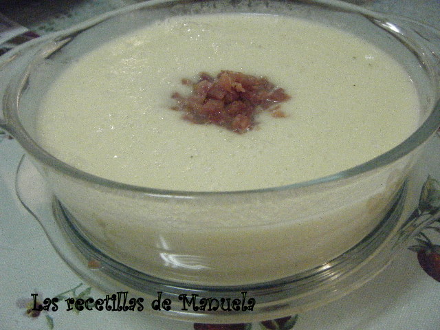 7 Sirva fría y acompañada de jamón serrano en tiras finas o cebollino picado.