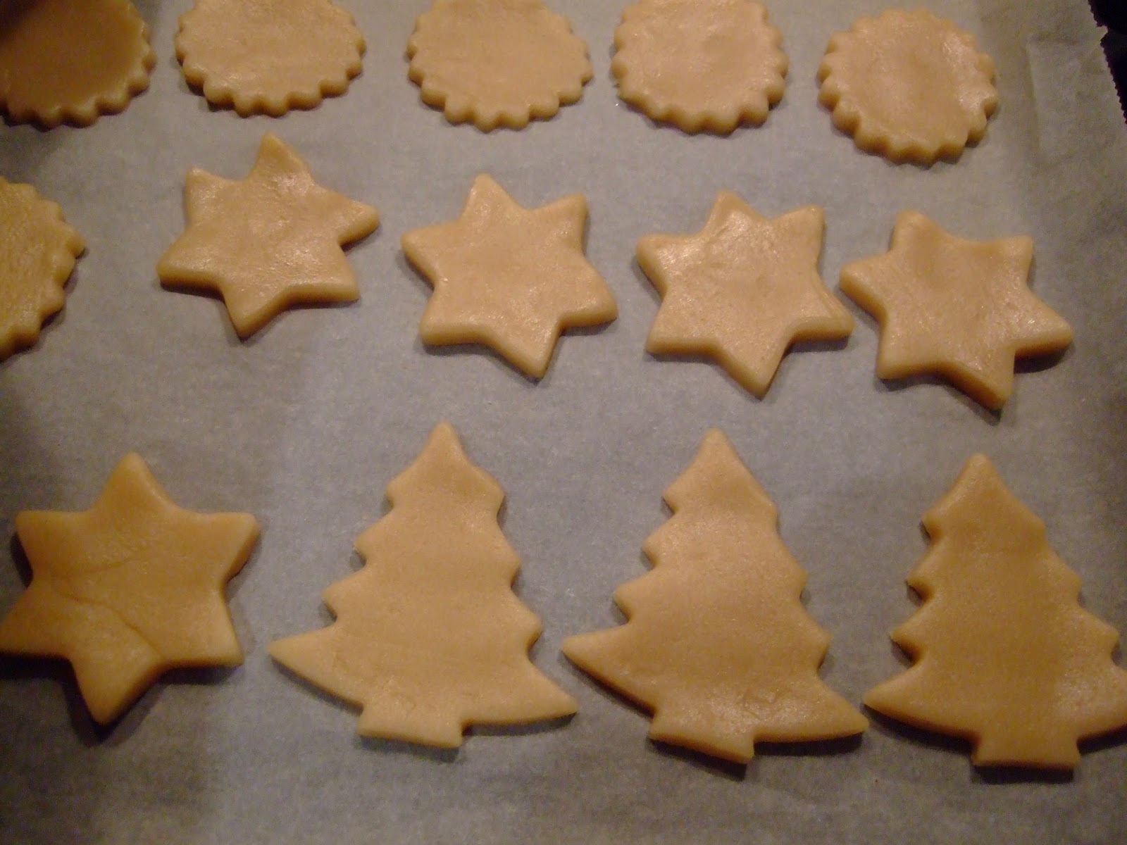 Mientras tanto forramos la bandeja del horno con papel de hornear y ponemos las galletas.